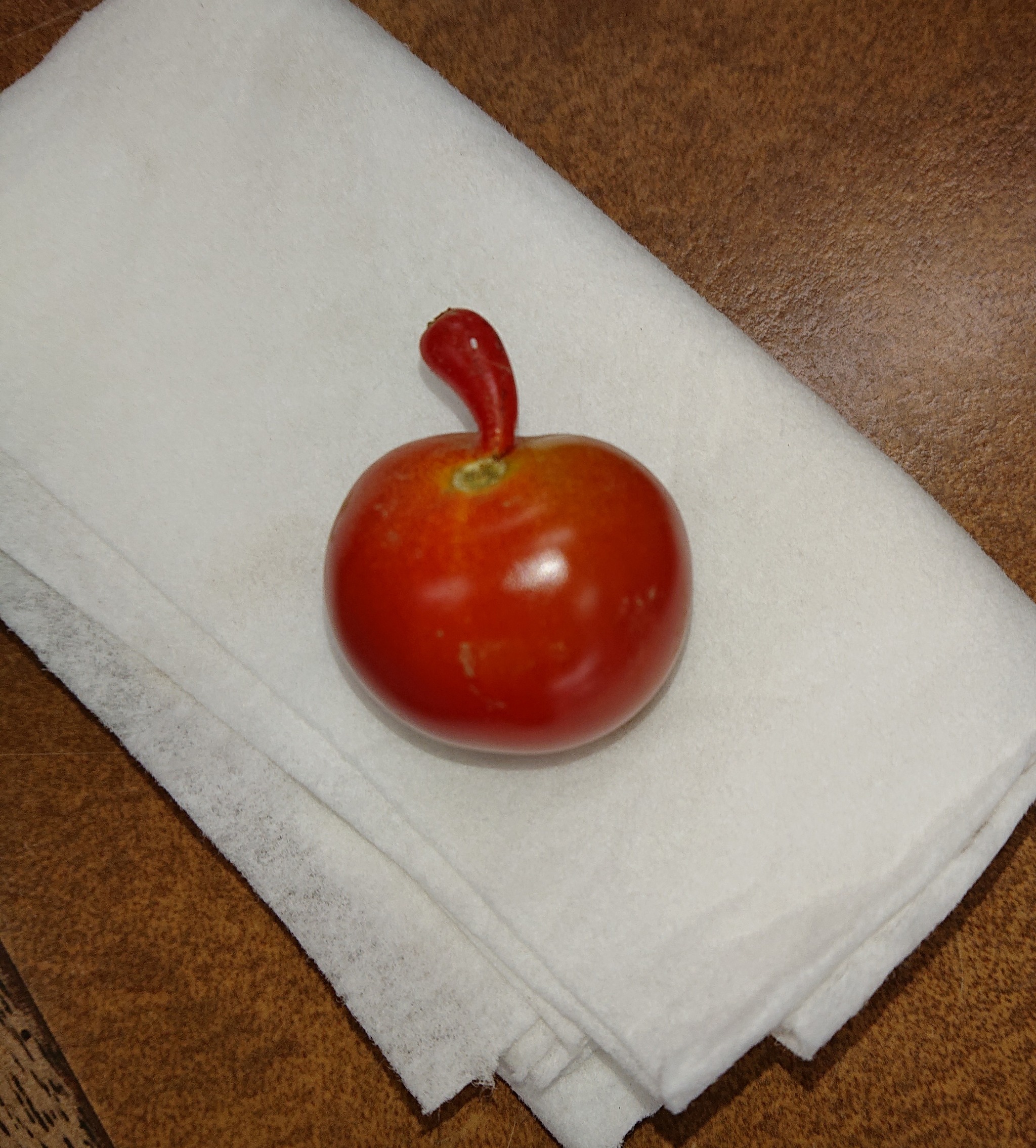 ハウスでとれたミニトマトに、非常に変わった形をしたものがありました。。。味は変わらず美味しかったです。笑